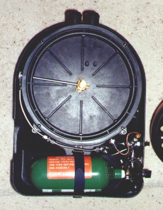 backplate with the screen mesh, the harness, and the Anti-Anoxia valve.