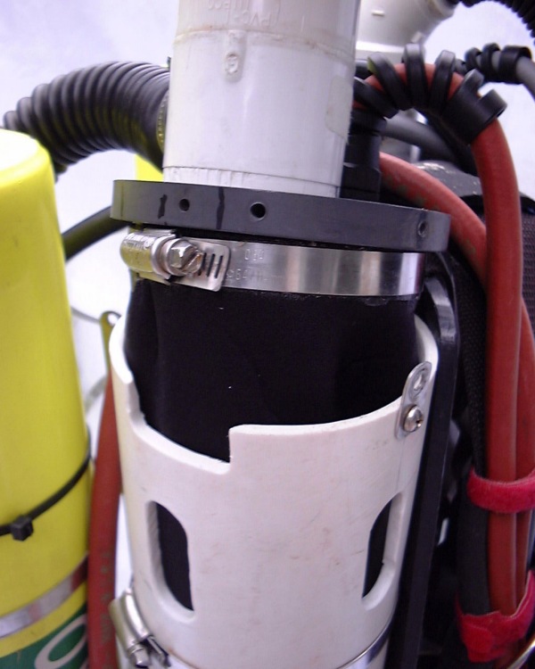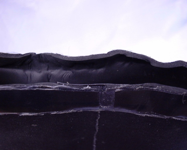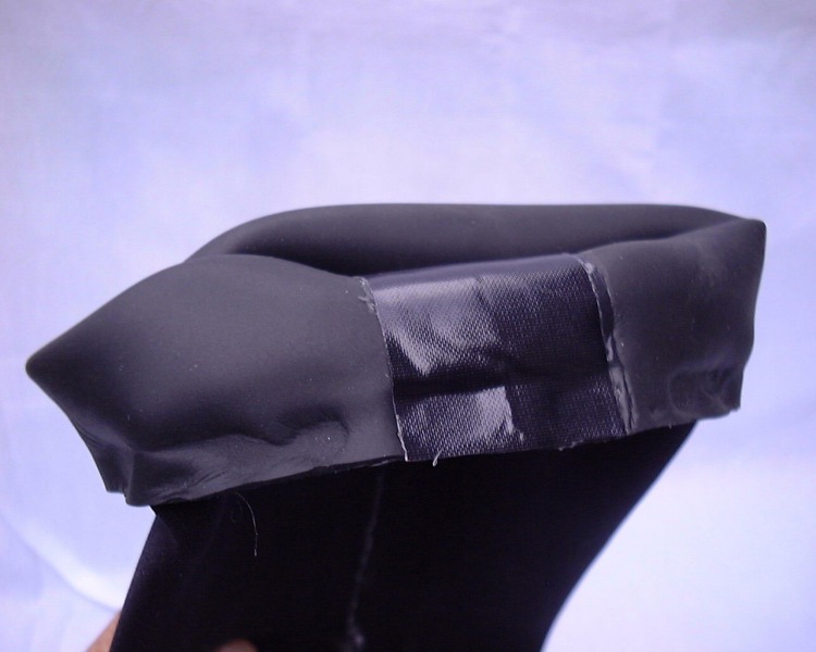 Detail of the top edge of the counter lung. The inside is straight neoprene to help sealing and there is nylon on the outside for protection.